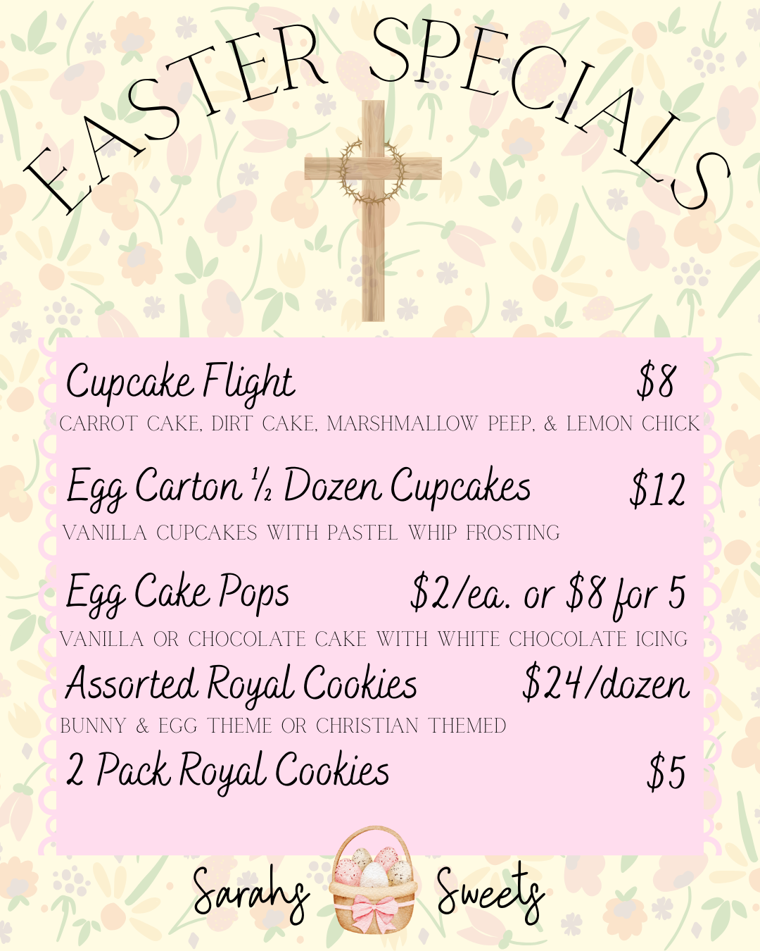 Contact me to put in your pre-orders! Ordering ends 2 days before Easter.